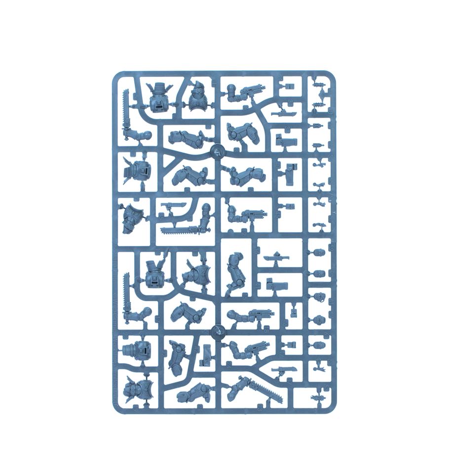 - 5x Assault Intercessors – en kan byggas som Sergeant med tung boltpistol, handflamer, plasma pistol, samt val mellan chainsword, power weapon, power fist eller thunder hammer.