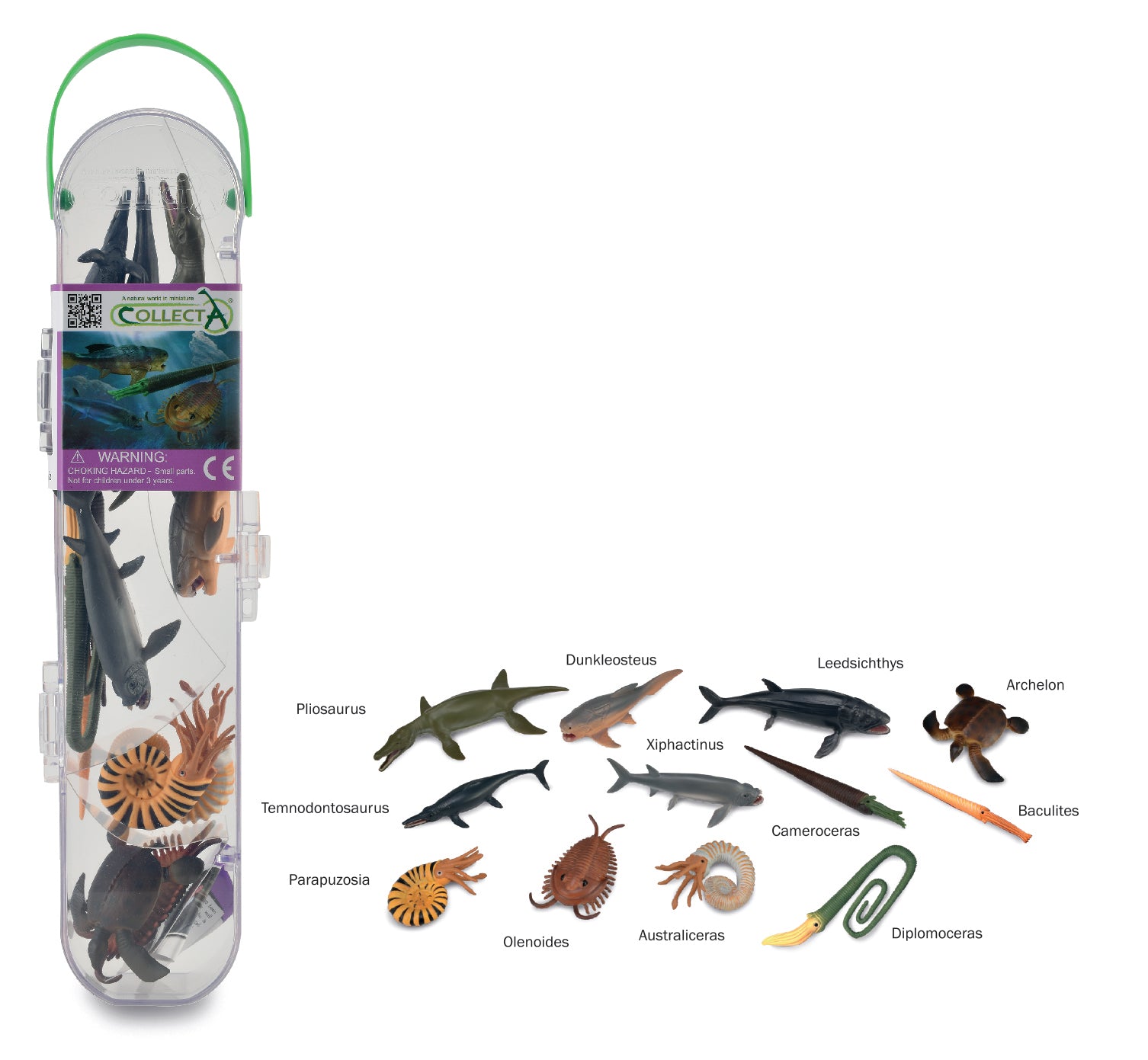 Upptäck CollectA Förhistoriska Marint Box, en fantastisk samling av 12 mini-figurer som ger liv åt några av världens mest imponerande marina förhistoriska varelser. Från den skrämmande Dunkleosteus till den majestätiska Archelon – denna samling är en perfekt tidsresa för både unga och vuxna samlare!