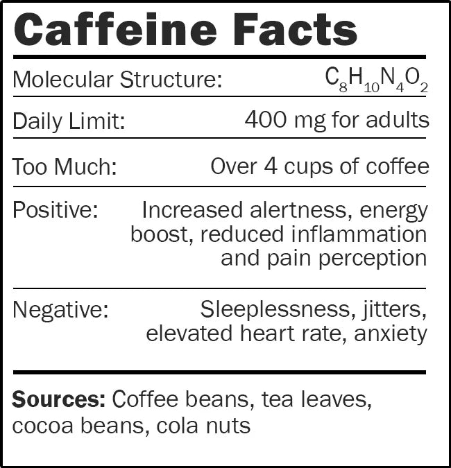• För mycket koffein kan ge hjärtklappning, oro och sömnsvårigheter.