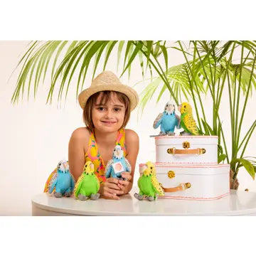 Möt den livliga gröna undulaten från Hermann Teddy Collection – ett mjukt och naturtroget gosedjur som ser nästan lika verkligt ut som en riktig undulat. 🐦💚 Perfekt för fantasifulla lekar eller som en färgstark inredningsdetalj i barnrummet.