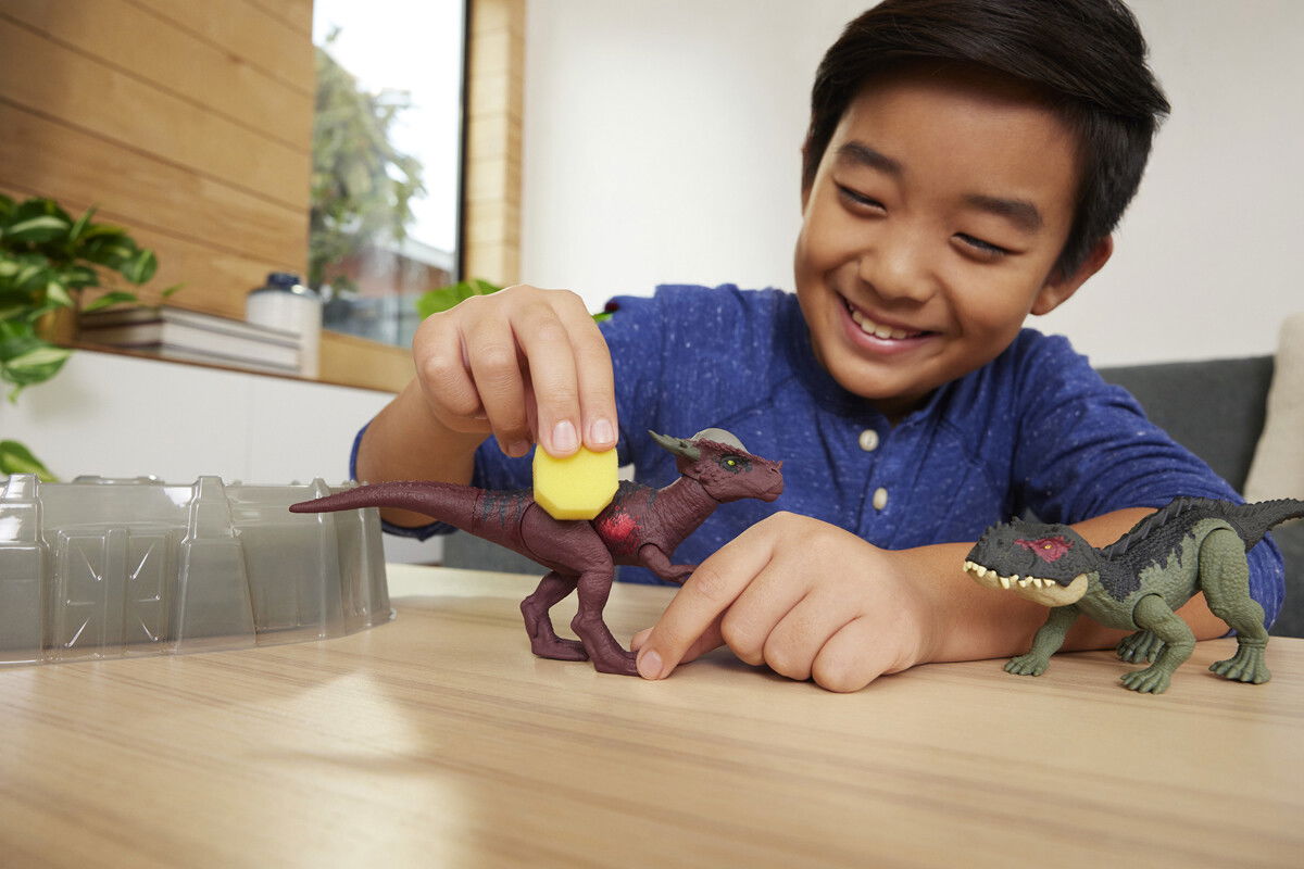- Upptäck, avslöja och strid – allt i ett actionfyllt Dino Reveal BattlePack!