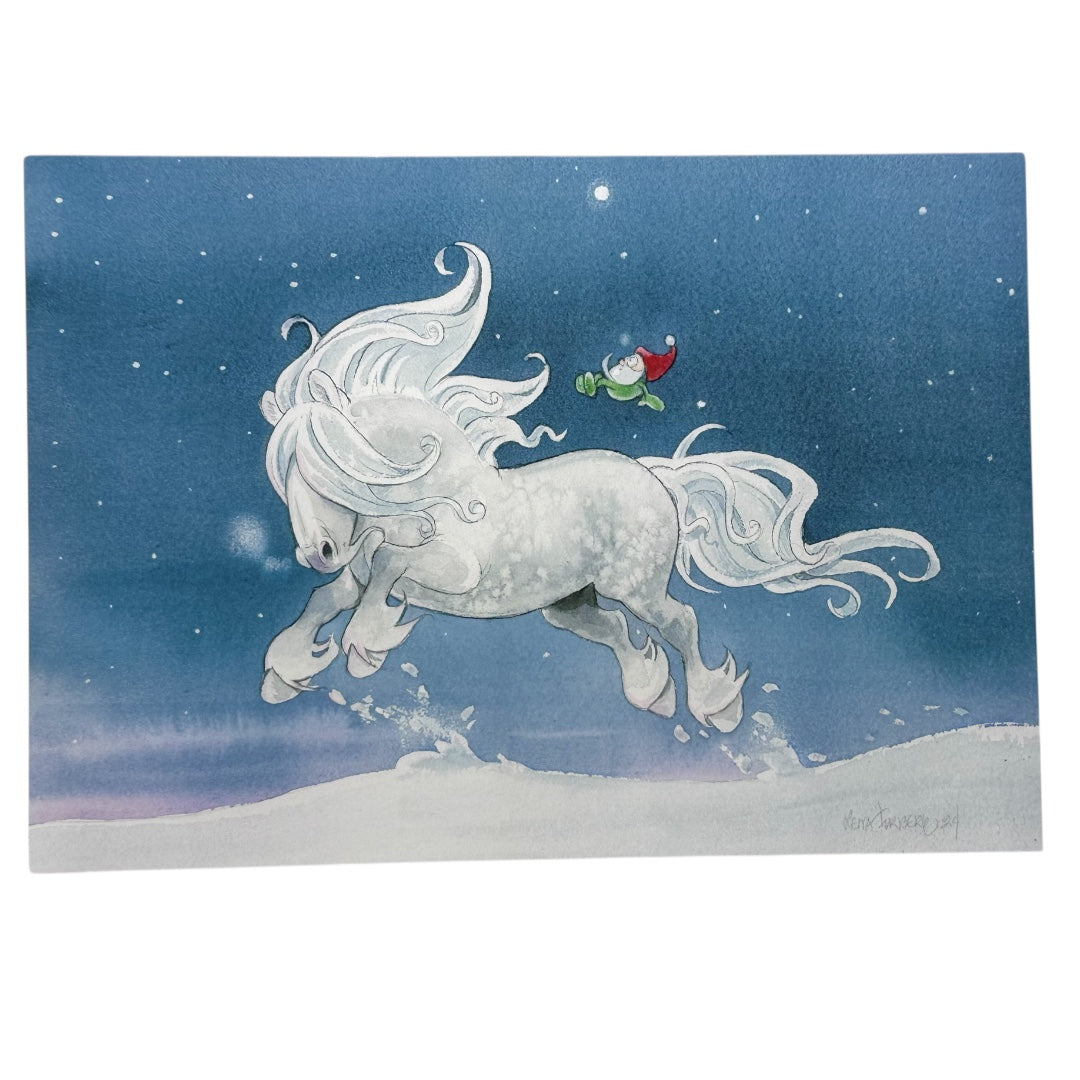• Motiv: ”Snögalopp” – akvarell ur Tomtehäst-serien