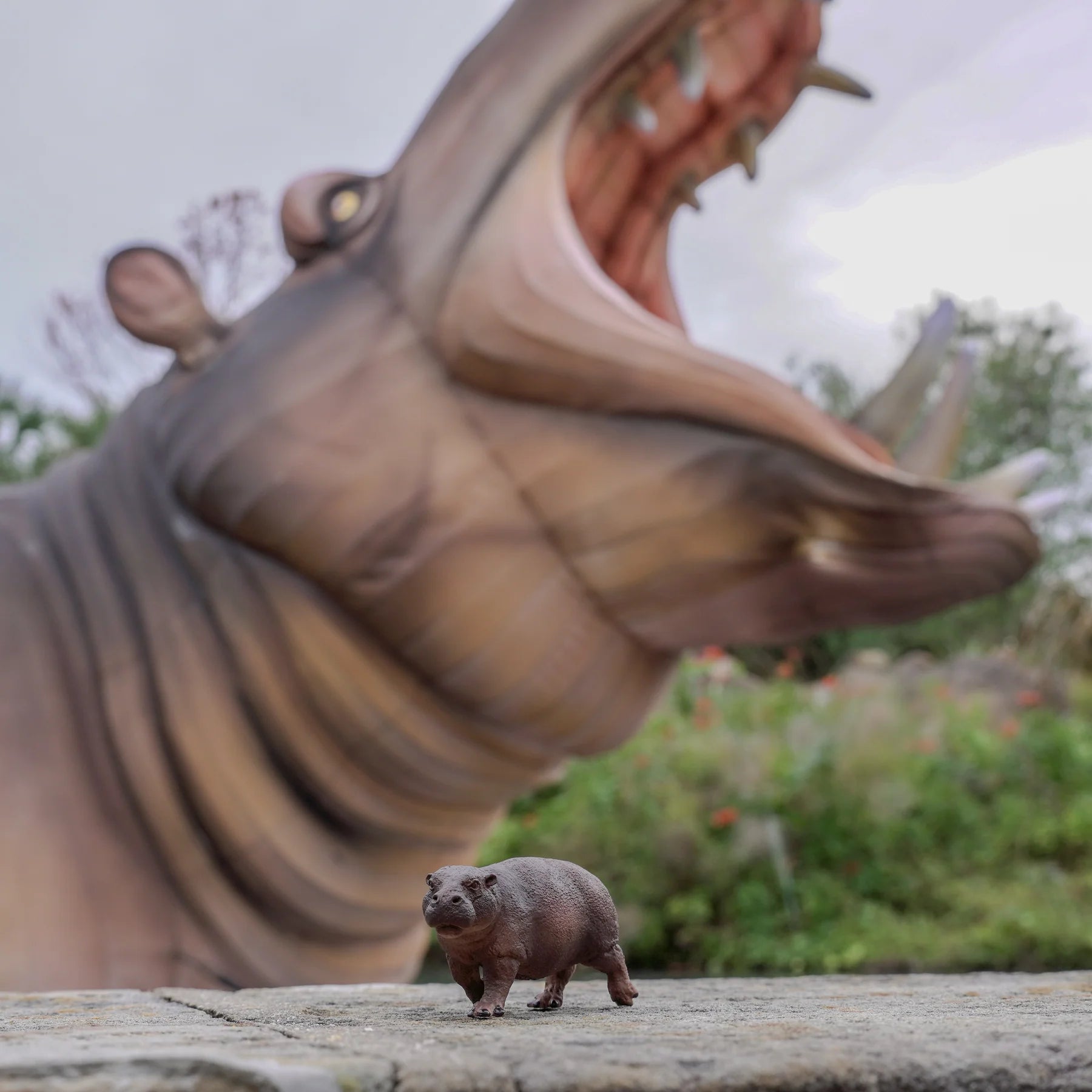 Vid första anblicken kan dvärgflodhästen se ut som en bebisflodhäst, men den är faktiskt en egen art – fullt utvuxen vid ungefär halva storleken och endast en fjärdedel av vikten jämfört med den vanliga flodhästen. Eftersom den lever mer på land än i vatten har den mindre framträdande näsborrar och en kompakt kroppsform som passar den västafrikanska regnskogen.